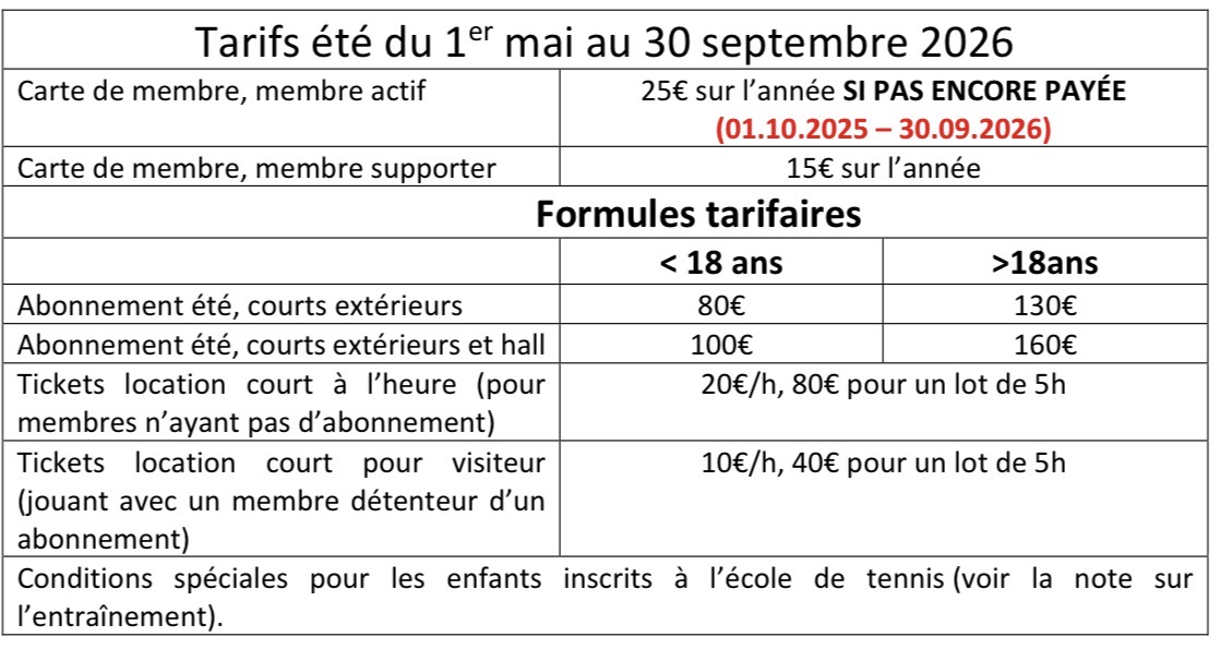 Votre abonnement sera activé après réception de votre paiement ce qui vous permettra de faire des réservations dès l’ouverture des courts prévue vers fin avril 2025.